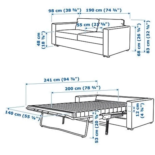 Серия диванов VIMLE состоит из секций, которые можно свободно комбинировать в соответствии с вашими предпочтениями и особенностями вашего дома. В этой секции есть диван, который легко раскладывается, с толстым удобным матрасом.