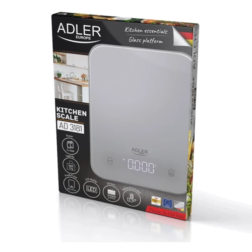 Adler AD 3181 — элегантные и точные кухонные весы, которые идеально подойдут для любой кухни. Благодаря высокой емкости и точности они позволяют точно измерять ингредиенты, что необходимо для приготовления изысканных блюд. Весы оснащены современным светодиодным дисплеем, который обеспечивает отличную читаемость показаний.