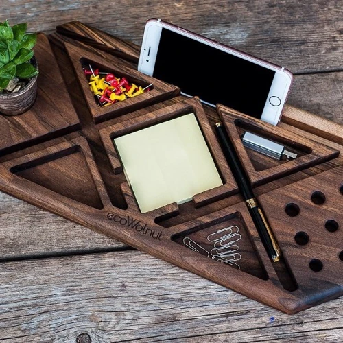 Что может быть более гармоничным, чем сочетание дерева и зелени комнатных растений? Эта подставка просто создана для тех, кому по душе ощущение близости с природой. Благодаря этому изделию у вас все будет под рукой и всегда найдется место для различных мелочей: ручек, скрепок, стикеров и прочих канцелярских штучек.