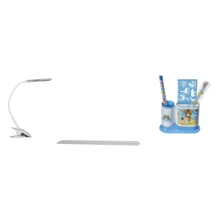 Лампа светодиодная Evo-Led-308 W + Настольный набор EVO-2403001 BL + Корзина для канцтоваров KP-01 BL