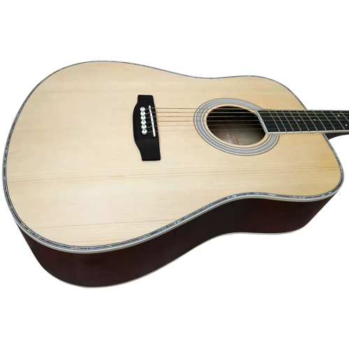 ### Корпус Форм-фактор акустической гитары Parksons JB4111- Dreadnought, что считается стандартом в гитаростроении. Правосторонняя ориентация корпуса в классическом цвете Natural. Ель, липа - благородная древесина, применяемая при изготовлении верхней, нижней деки и обечайки акустической гитары Parksons JB4111, которая прекрасно звучит во многих музыкальных стилях благодаря сбалансированному, натуральному звуку.