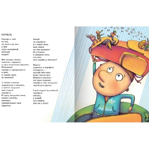 Издание, которое легко опровергнет уверенность взрослых в том, что поэзия не очень интересна школьникам, а особенно мальчикам, для самостоятельного чтения. Достаточно прочитать несколько строчек смешных стихотворений и скользнуть взглядом по веселым и динамичным иллюстрациям ― и любого сорванца-нечитайку к книге притянет, как магнитом. И в этом нет ничего удивительного, потому что тандем остроумного пера известного поэта и веселого карандаша талантливого современного художника смог добыть в недрах тяжелых школьных будней больше тонны смеха. Не верите? Так проверьте, хотя смех и не так просто взвесить. А заодно узнаете об универсальности портфеля и перильных состязаниях, сравните, что на самом деле длиннее ― урок или перемена, а еще вам откроется очень, ну очень страшная тайна.
