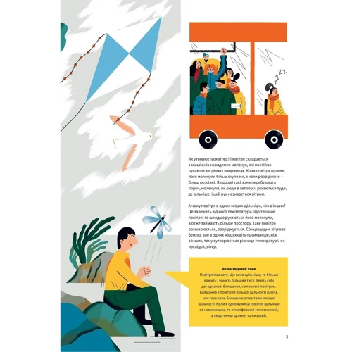 Ви дізнаєтеся, що відбувається, коли наближається торнадо, куди мандрує пил, як ширяють птахи, як утворюється вітер і як з нього виробляють електроенергію. Ознайомитеся з будовою сучасних вітроелектростанцій та старовинних вітряків. Прочитаєте про те, що таке фен, гальни, бора, містраль та хто планерує над Гімалаями.