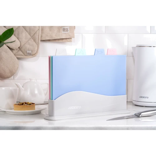 Кухонные досточки на подставке ARDESTO Fresh (4 шт.) изготовлены из устойчивого к износу и безопасного пластика. Материал не впитывает запахов, устойчив к загрязнению, не скользит. Благодаря стильному дизайну и ярким цветам станет эффектным акцентом на кухне. Досточки достаточно компактны – 33.5x23.5x7 см, а благодаря подставке экономят место на кухне.