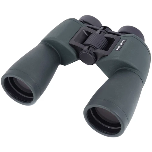 Бинокль Arsenal 12x50 Porro BW18-1250 - качественный и надежный бинокль для туриста и охотника, построенный по классической схеме с ипсользованием призм типа Porro. Стильный и эргономичный дизайн. Отличительной особенностью данной модели является достаточно высокое увеличение в 12х, что, собственно, является максимальным рекомендуемым при условии удерживания бинокля в руках во время проведения наблюдений. Большой диаметр объектива обеспечивает формирование яркой и контрастной картинки. Корпус азотозаполнен и герметично уплотнен, что исключает образование конденсата на внутренних поверхностях линз, а также проникновение влаги внутрь корпуса. Таким образом, бинокль допускает использование при любых погодных условиях. Для защиты от механический повреждений прочный корпус армирован нескользящим резиновым покрытием темно-синего цвета.