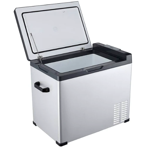 Полезная емкость камеры холодильника 50л. Автомобильный холодильник может хранить напитки, мороженое, йогурт, молоко, говядину, бекон, фрукты и т.д. при желаемой температуре. Идеально подходит для использования в автомобиле, офисе, для кемпинга, пикника.