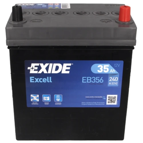 Автомобильный аккумулятор от бренда EXIDE модели 6СТ-35 АзЕ Excell EB356. Выполняет все основные и необходимые функции в вашем автомобиле. Для запуска двигателя подает определенное количество энергии на стартер, а также питает электроприборы авто, в то время когда двигатель не работает. Аккумулятор является устройством многократного действия, так как внутри него происходит обратимость химических процессов, то есть циклы разряд-заряд. Так как сложные устройства, такие как автомобильный аккумулятор, могут периодически выходить из строя, необходима качественная замена устройства. Для этого необходимо разобраться в характеристиках аккумулятора автомобиля.