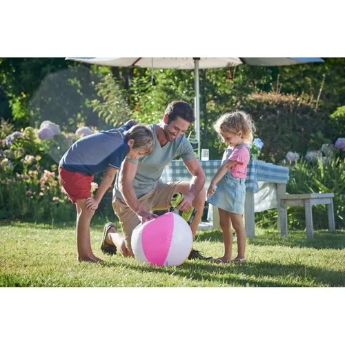 Идеально для накачивания детских бассейнов, воздушных матрасов и надувных лодок. Накачивает воздушный матрас за две минуты. Высокая скорость накачивания 210 л/мин при давлении до 0.034 бар/ 0.5 PSI. Может использоваться как воздуходувка для очистки рабочего верстака. Комплектуется дополнительными адаптерами, закрепленными в специальном отсеке на корпусе. Простая перестановка патрубка позволяет использовать инструмент для откачивания воздуха.
