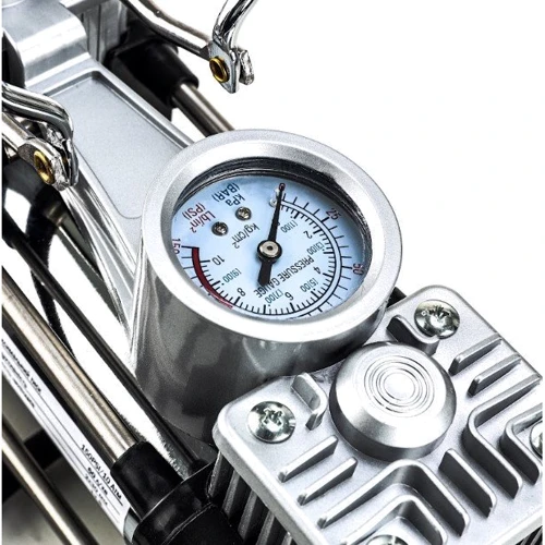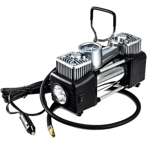 Преимущества этой модели - это высокие показатели скорости накачки, мощности и производительности. Компрессор подключается к разъему прикуривателя автомобиля и к автомобильному аккумулятору с напряжением 12В и оснащен мощным электродвигателем поршневого типа с показателем производительности 60-80 л/мин.
