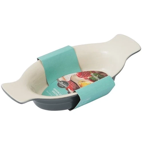 Форма для запекания – практичный и очень удобный кухонный аксессуар. В ней можно запекать рыбу, готовить куриные крылышки, мясо, овощи и макаронные запеканки. Продукты в ней получаются невероятно нежными, ароматными, без лишней жидкости и максимально сохраняют свои вкусовые качества и витамины. Эта овальная форма для запекания с удобными ручками от бельгийского всемирно известного бренда Berghoff изготовлена из высококачественной натуральной керамики.