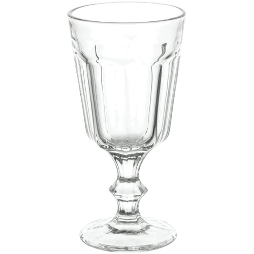 • Бордо и другие сухие красные вина принято подавать в круглых фужерах чуть меньшего диаметра, чем предыдущие. Емкость составляет 260 мл. Форма — удлиненная, ножка — стройная.