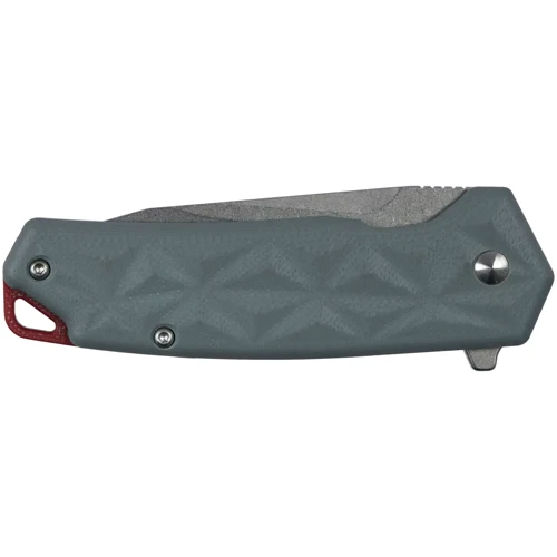 Клинок профиля Drop Point изготовлен из стали D2. Очень легко открывается с помощью флиппера и системы шарикоподшипников. В открытом состоянии надежно фиксируется замком Frame Lock. За защиту от царапин и следов эксплуатации отвечает покрытие Stonewash, а стильное фальш-лезвие разнообразит простой вид клинка.
