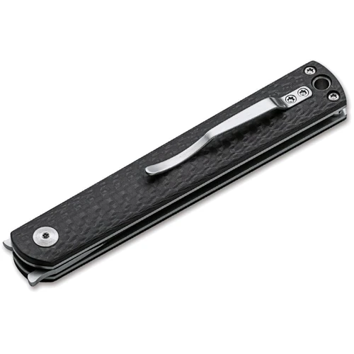 Нож раскрывается с помощью флиппера и в открытом положении полностью прячется в рукояти, не нарушая, таким образом, изящный дизайн клинка. Для фиксации используется замок Liner Lock, который по праву считается одним из самых легких и прочных в мире.