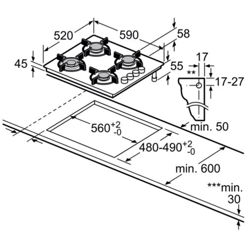Размеры для встраивания | (ШхГ) 560x480 мм |