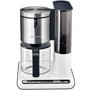 Устройство поставляется со стеклянной колбой, в которой можно наблюдать за процессом приготовления. В конструкции предусмотрен съемный фильтр, его размеры составляют 1х4. Также предусмотрен интегрированный отсек для хранения кабеля.