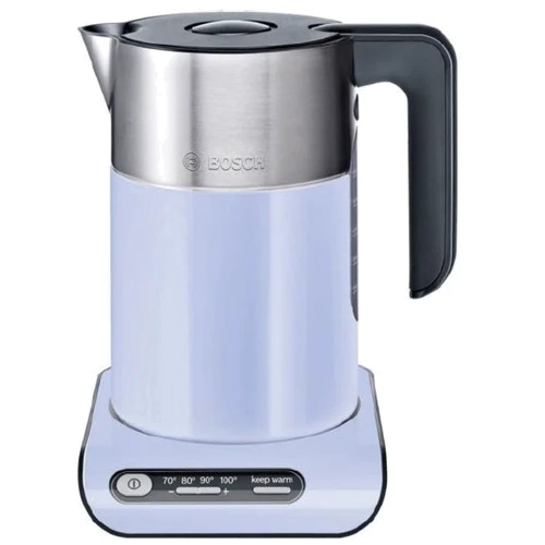 Модель электрочайника Bosch TWK8619P выгодно отличается от своих собратьев многими показателями, в том числе практичностью и безопасностью. Электрический чайник Bosch TWK8619P представляет собой современную модель с функцией Temperature Control. Благодаря этой функции у владельца этого чайника есть возможность установить нужную температуру нагрева воды от 70°C до 100°C. Функция Keep Warm Function на протяжении последующих 30 минут поддерживает заданный температурный режим. Кроме того, корпус электрочайника имеет двойные стенки из пластика и металла, что позволяет ему выступать в качестве термоса.