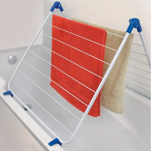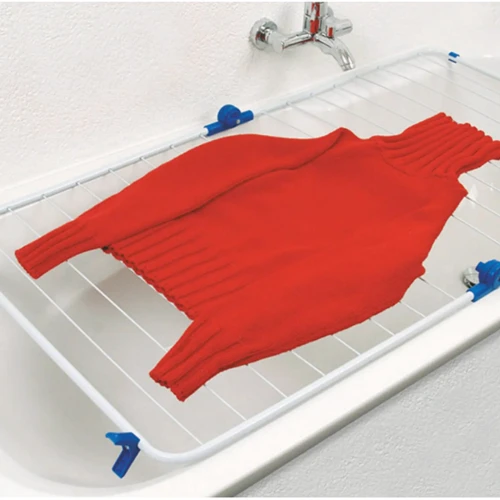 Навесная сушилка для белья Casa Si Alibaba White крепится прямо на ванну и не будет мешать, пока сохнет белье. Она имеет специальные пластиковые упоры для фиксации на стенки ванны, и может размещаться как в поперек, так и вдоль ванны благодаря регулируемому углу раскрытия сушилки. Несмотря на компактные размеры, рабочая длина Casa Si Alibaba составляет 9 метров, что соответствует полной загрузке стандартной стиральной машины. В сложенном состоянии сушилка имеет толщину всего 5 см и сможет поместиться за стиральной машиной или в углу ванной комнаты.