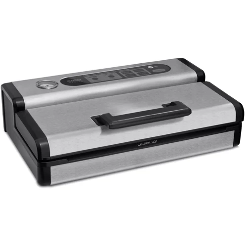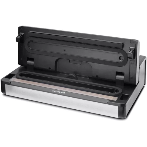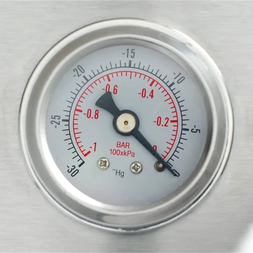 Профессиональный, вакуумный упаковщик из нержавеющей стали, 130 Вт. Двухпоршневой насос и мощный двигатель для интенсивной работы и непрерывного профессионального использования, максимальное вакуумное давление при 0.9 бар.