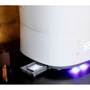 #Скорость испарения и емкость резервуара Резервуар имеет емкость 5,5 л и оснащен керамическим фильтром очистки воды. По окончании жидкости в резервуаре устройство автоматически отключится, предотвращая повреждение двигателя. Благодаря встроенному таймеру вы сможете запрограммировать длительность увлажнения. Максимальная скорость испарения составляет 330 мл в час, а средняя – 280 мл в час. При минимальной скорости 230 мл в час длительность увлажнения равняется 24 часам.