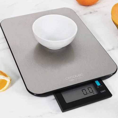 # Стильный утилитарный дизайн Кухонные весы Cecotec с платформой из нержавеющей стали и покрытием против отпечатков пальцев всегда стильно выглядят на кухне. Тонкий дизайн позволяет легко хранить их в любом месте.