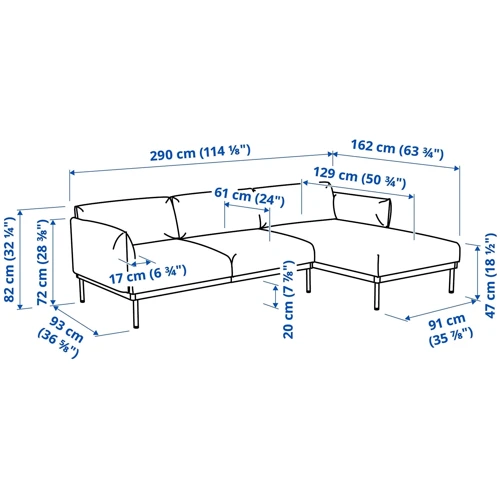 Шезлонг может располагаться как с левой, так и с правой стороны, что позволяет адаптировать диван к свободному пространству и вашим предпочтениям.
