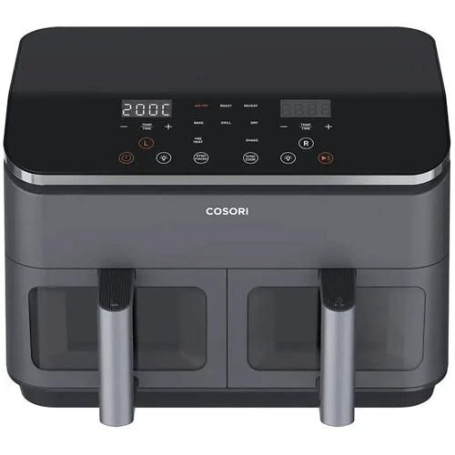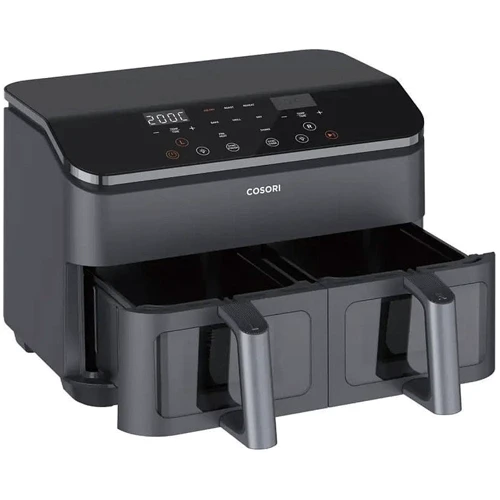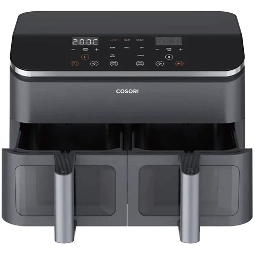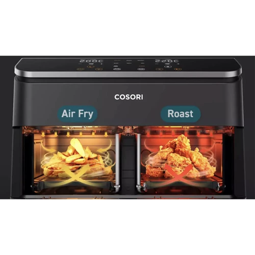 Две корзины объемом по 4.25 л дадут вам максимальную эффективность. Готовьте совершенно разные блюда без перемешивания ароматов и вкусов с функцией одновременного завершения процесса в двух зонах или большие порции одного блюда. Прозрачное закаленное боросиликатное стекло гарантирует отличную видимость для контроля ингредиентов на каждом этапе обработки. Универсальная мультипечь Cosori заменит духовку, сковороду, сотейник, гриль, фритюр и множество других устройств, ведь создаст вам широкое разнообразие вкусных блюд с множеством функций. Она потребляет на 55% меньше электроэнергии и готовит на 40% быстрее конвекционной духовки.