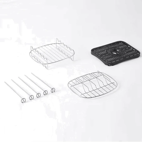 Решетка для шампуров и решетка для выпечки придают еще больше возможностей для вашего рациона. Создавайте здоровые альтернативы любимым перекусам, например, домашний шашлык, сырные палочки и стрипсы с функцией аэрогриля без лишнего жира.