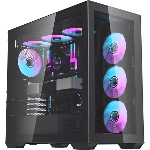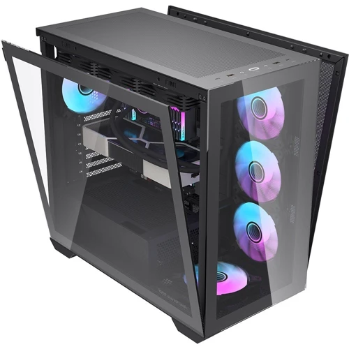 Боковая панель из закаленного стекла: Корпус оснащен боковой панелью из закаленного стекла, что придает элегантности и показывает внутреннюю компонентную часть системы.