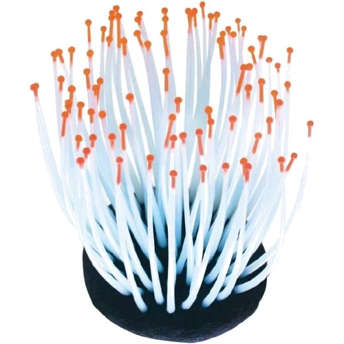 Светящиеся декорации в аквариуме - несомненно завораживающее и необычное зрелище. Анимона изготовлена из мягкого и стойкого цветного силикона, что делает ее подвижной в течении аквариума. Устанавливать декорацию лучше всего в аквариуме в зонах с хорошим движением воды и наблюдать за тем, как анимона движется.