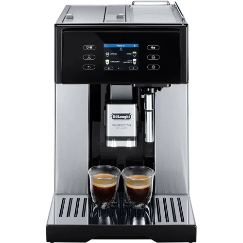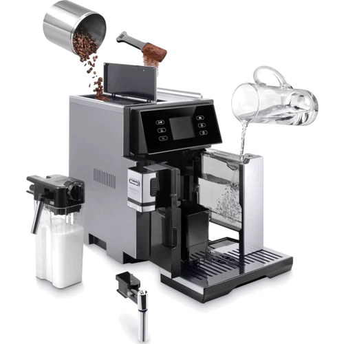 Кофеварка, мощность 1450 Вт, встроенная кофемолка, емкость кофемолки 250 г, тип используемого кофе – в зернах/молотый, объем резервуара для воды 1.4 л, резервуар для молока, автоматическое приготовление капучино, давление 15 бар, самоочистка, фильтр для воды, дисплей, подогрев чашек/кофейника.