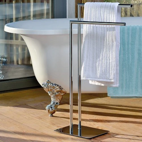 Стильный изящный держатель для полотенец KELA Style на подставке выполнен из хромированной стали. Красивый и функциональный аксессуар дополнит интерьер ванной комнаты и поможет компактно и эстетично разместить все необходимое.