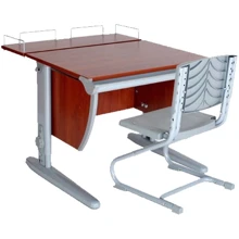 Стол универсальный трансформируемый СУТ.15-01 (120 см*88 см)+ Полка задняя СУТ.15.210 (2 шт.) + Стул СУТ.01-01 (фанера) яблоня/серый
