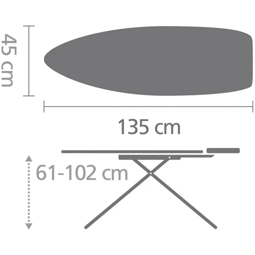 Гладильная доска является одним из важных и полезных аксессуаров обихода человека. Удобная и функциональная гладильная доска от Brabantia поможет существенно ускорить и облегчить процесс глажения, а также превратит утомительное занятие в приятное времяпрепровождение. Эта доска поможет вам выглядеть аккуратно и аккуратно, приложив к этому минимум усилий. Конструкция доски отличается высокой надежностью, прочностью и стойкостью, выдерживает нагрузку до 80 кг. Идеально ровная рабочая поверхность обеспечивает высокую скорость и качество глажения. Поверхность обтянута чехлом из 100% хлопка, с подкладкой из поролона и фетра, с фиксирующим эластичным шнурком. Жестокая зона для утюга на конце доски может выдерживать температуру до 220 °C.