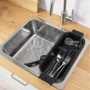 Этот дуршлаг устанавливается на мойку, что позволяет использовать его для мытья овощей и фруктов, в качестве посудной сушилки или для хранения аксессуаров для мытья посуды.