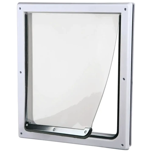 Дверца Trixie подходит по размерам для собак. Позволяет питомцам свободно передвигаться по дому, не отвлекая хозяев. Прозрачная створка, бесшумно открывается и закрывается. Жёсткая металлическая планка на нижней части люка. Закрывается с помощью съёмной металлической задней панели для защиты от ветра, непогоды и незваных гостей.