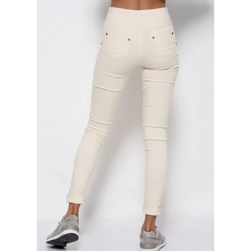 Молочные повседневные джеггинсы из джинсового эластичного материала.