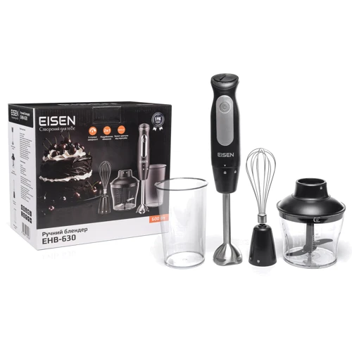 Ручной блендер EISEN EHB-630 имеет мощность 600 Вт, что делает его достаточно мощным для большинства кухонных задач. От измельчения овощей до приготовления соусов этот блендер поможет вам быстро и легко справиться с любой задачей.