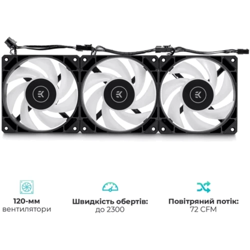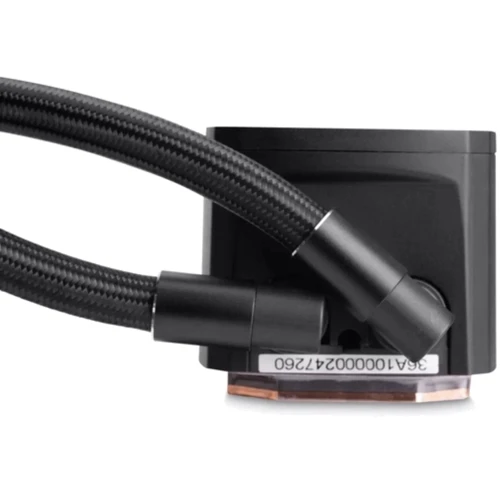 Вентиляторы имеют размеры 120 x 120 x 25 мм и скорость вращения от 550 до 2300 об/мин. Они также имеют цифровую RGB-подсветку, которая синхронизируется с блоком насоса. Воздушный поток вентиляторов составляет 72 CFM, а уровень шума – 36 дБ при максимальной скорости. Трубки из резины со сверхнизким испарением покрыты нейлоновой оплеткой и имеют длину 370 мм.