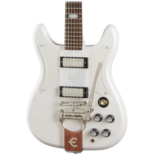 Электрогитара EPIPHONE CRESTWOOD CUSTOM TREMOTONE POLARIS WHITE обладает всеми отличительными чертами оригинального дизайна: симметричная дека из махагон с двумя вырезами, вклеенный гриф из махагон, 2 винтажных мини-хамбакера и элегантное тремоло Tremotone. Однако это вполне современный инструмент с первоклассным оборудованием, включая высококачественные потенциометры CTS, верхний и нижний порожки Graph Tech, уменьшенную голову грифа Kalamazoo со значком Epiphone Bikini и молниеносную 12-дюймовую накладку.