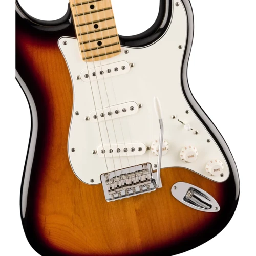 Корпус гитары выполнен из ольхи с глянцевой отделкой, что не только подчеркивает элегантный вид инструмента, но и обеспечивает сбалансированное звучание с чётким откликом. Три звукоснимателя с одной катушкой Player Series придают инструменту характерный тон Stratocaster, который прославил этот инструмент в жанрах от рока до блюза.