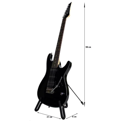 Электрогитара, 6 струн, форма - GSA, дека - махагони, гриф - клен/палисандр, звукосниматели - H-S-S, тремоло, цвет - черный.