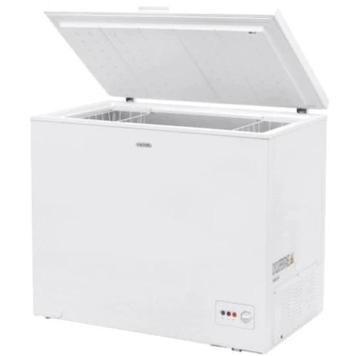 Морозильный сундук занимает небольшую горизонтальную площадь дома или на даче, но вмещает до 250 л продуктов для большой семьи. Регулируемые ножки обеспечивают надежную установку, а колесики предназначены для удобного передвижения при переезде или обновлении кухни.