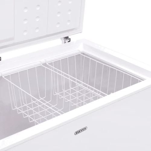 Морозильный сундук занимает небольшую горизонтальную площадь дома или на даче, но вмещает до 300 л продуктов для большой семьи. Регулируемые ножки обеспечивают надежную установку, а колесики предназначены для удобного передвижения при переезде или обновлении кухни.