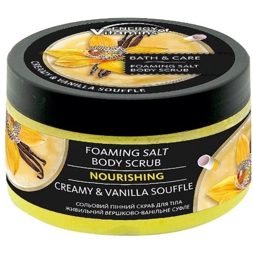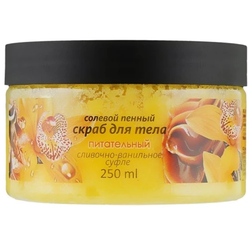 Очищение, увлажнение и глубокое питание - залог здорового сияния кожи. Солевой пенный скраб для тела, питательный «Сливочно-ванильное суфле» заботится о том, чтобы ваша кожа как можно дольше оставалась молодой и эластичной.