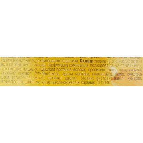 Состав: Sodium Chloride, Cocamidopropyl Betaine, Glycerin, PEG-4 Rapeseedamide, Parfum, Polysorbate 20, Xanthan Gum, Hydrolyzed Silk Protein, Hydrolyzed Milk Protein, Rosa Canina Flower Extract, Trifolium Pratense Extract, Hippophae Rhamnoides Extract, Vanilla Planifolia Flower Extract, Panthenol, Kaolin, Benzyl Alcohol