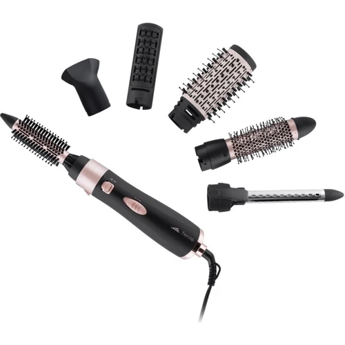Эта плойка может больше, чем фен. В упаковке вы найдете две круглые щетки ø 21 мм и 50 мм, плоскую щетку, волнистую насадку ø 33 мм, плойку с щипцами, практичный концентратор и дорожный футляр.