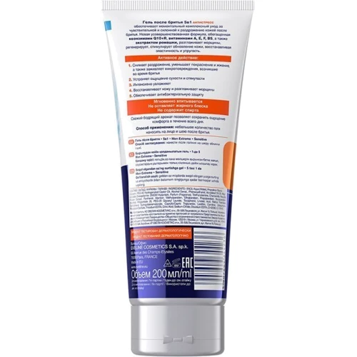 Чувствительная кожа требует особого ухода, особенно, если речь идет о процедуре бритья. Даже мужчине, сильному и храброму, порой не удается сдержать эмоции, вызванные нанесением средств после бритья, в состав которых входят компоненты, вызывающие жжение. Зная это, специалисты польской торговой марки Eveline разработали специальный продукт — гель после бритья Men Extreme Sensitive Q10+R 5 в 1.