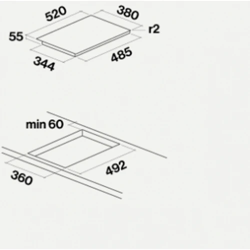 Размеры и мощность зон нагрева (см, кВт): 2х2.1 (в режиме усиления 3.5 кВт)