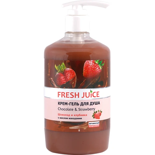 Современный косметический рынок переполнен интересными новинками по уходу за кожей тела. Уникальный продукт Fresh Juice Love Attraction Chocolate & Strawberry обеспечивает бережное очищение и превосходный уход за кожей. Крем-гель для душа Fresh Juice Love Attraction Chocolate & Strawberry сочетает в себе необыкновенно мягкое очищение и питание вашей кожи.