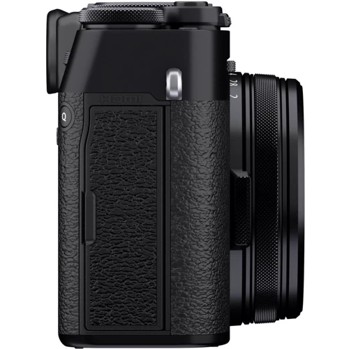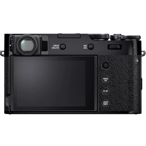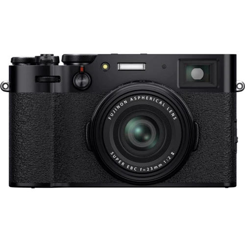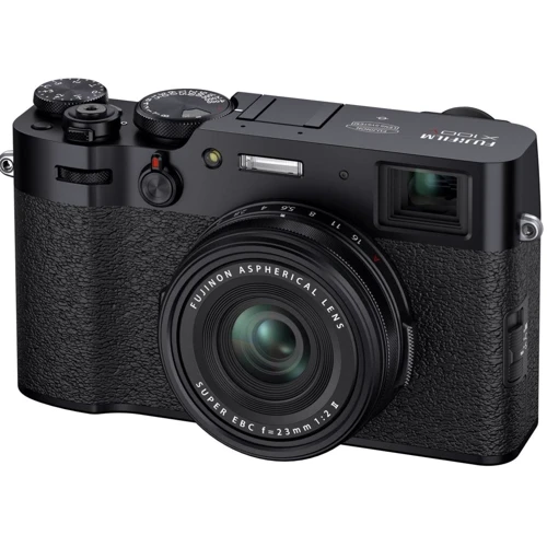 Fujifilm X100V Black – компактный фотоаппарат с несменным объективом, характеризующийся умеренной защищённостью и высокой изобразительной производительностью. Модель воспринимает окружающую действительность посредством 26-мегапиксельного X-Trans CMOS 4 датчика с физическими габаритами 23,5x15,6 мм и максимальным размером кадра 6240x4160 точек, а также процессора изображения X-Processor 4. Штатная оптика Fujifilm X100V Black располагает максимальной апертурой f/2.0 и 35-милиметровым фокусным расстоянием с полуметровым ближним пределом фокусировки. 478-граммовая конструкция размерами 128x75x53 мм вмещает модули Wi-Fi, Bluetooth, разъём USB Type-C, электронный видоискатель и откидной сенсорный 3-дюймовый LCD-экран с поддержкой функции Live View.